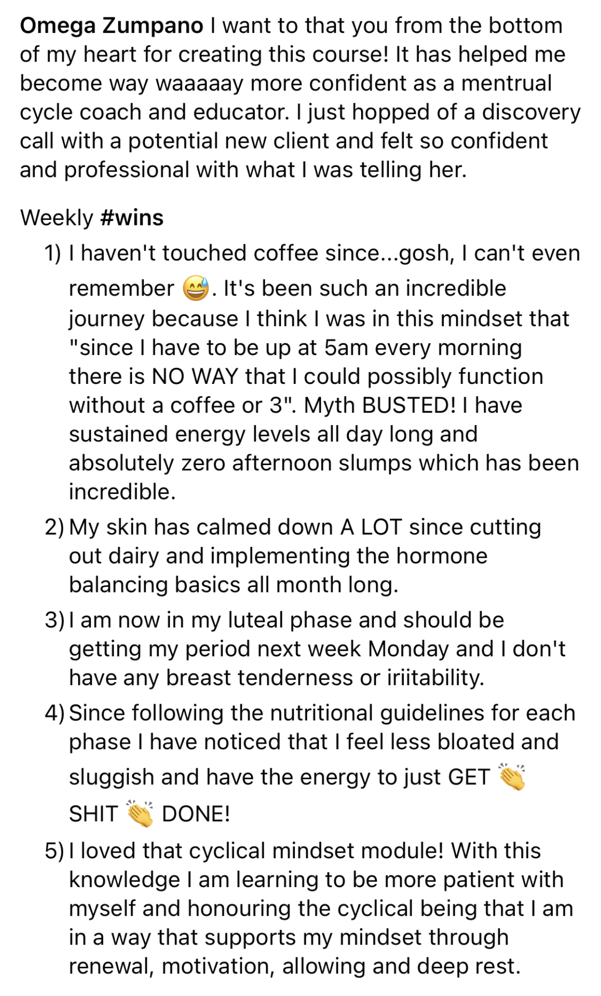 Access to a private facebook group of other Certified Hormone Health Coaches around the world
